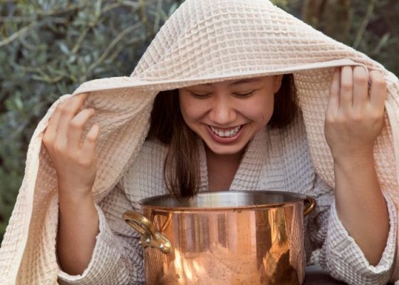 Xông hơi bằng lá tía tô để làm trắng da mặt