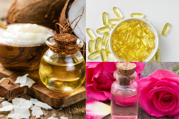 Dầu dừa kết hợp vitamin E và nước hoa hồng