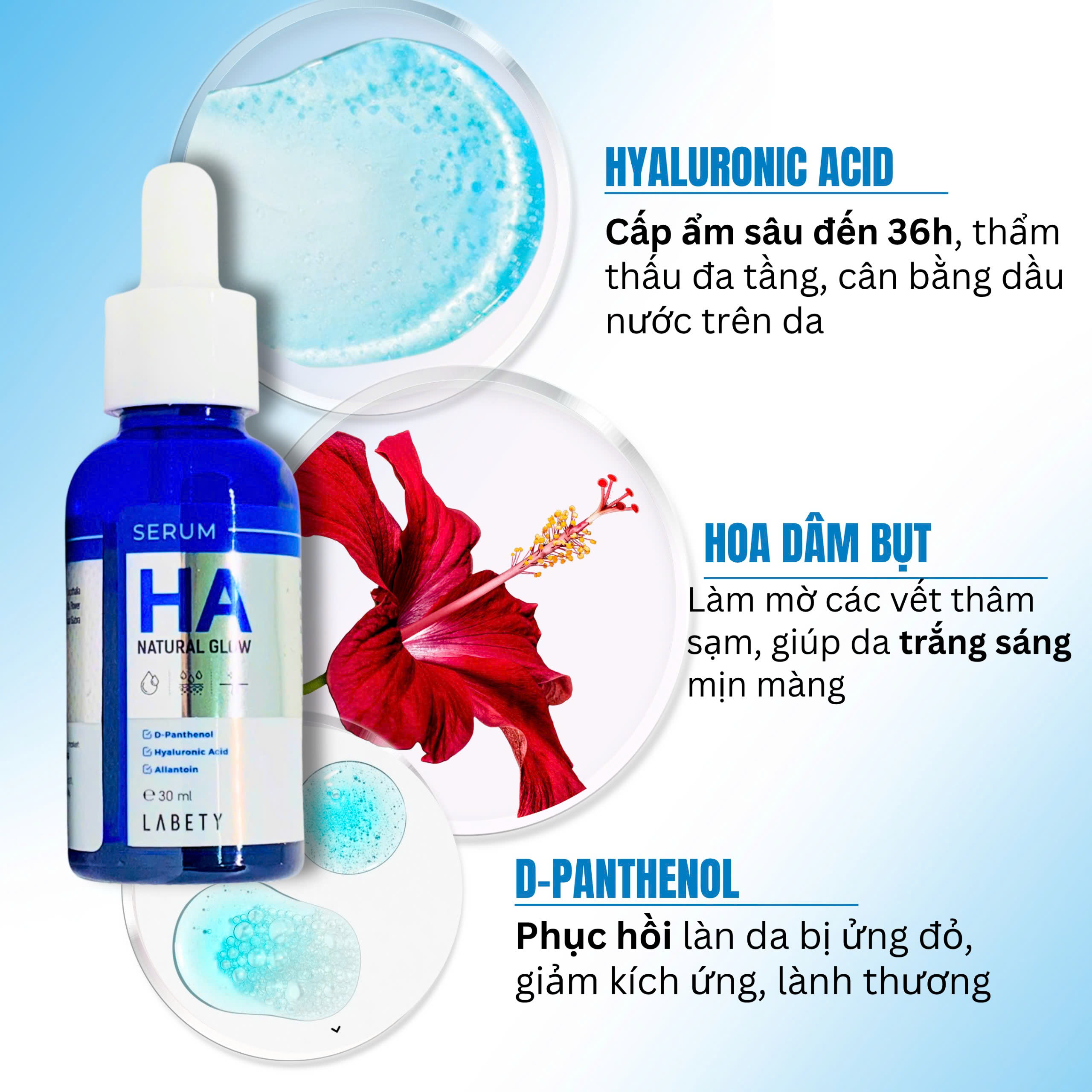 Không chỉ đơn thuần là serum cấp ẩm, serum HA NATURAL GLOW còn nổi bật như serum sáng da khả năng dưỡng sáng da đều màu, mờ thâm hiệu quả nhờ chiết xuất AHA tự nhiên từ hoa dâm bụt và từ các hoạt chất thiên nhiên giúp làm dịu da tức thì, như serum phục hồi da dầu mụn hỗ trợ se còi mụn nhanh và giảm tình trạng kích ứng thường gặp ở làn da nhạy cảm.Là serum da dầu mụn hiệu quả, kiểm soát dầu nhờn, se còi mụn và như serum mờ thâm mụn.